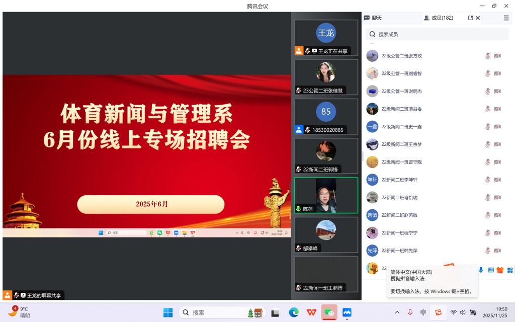 6月25日,体育新闻与管理系特邀2013届优秀校友张克瑶开展线上就业主题招聘会。张克瑶校友以丰富的行业经历与多元的职业积累,为大三、大四学子们送上满满的就业干货,活动圆满落幕并收获一致好评。