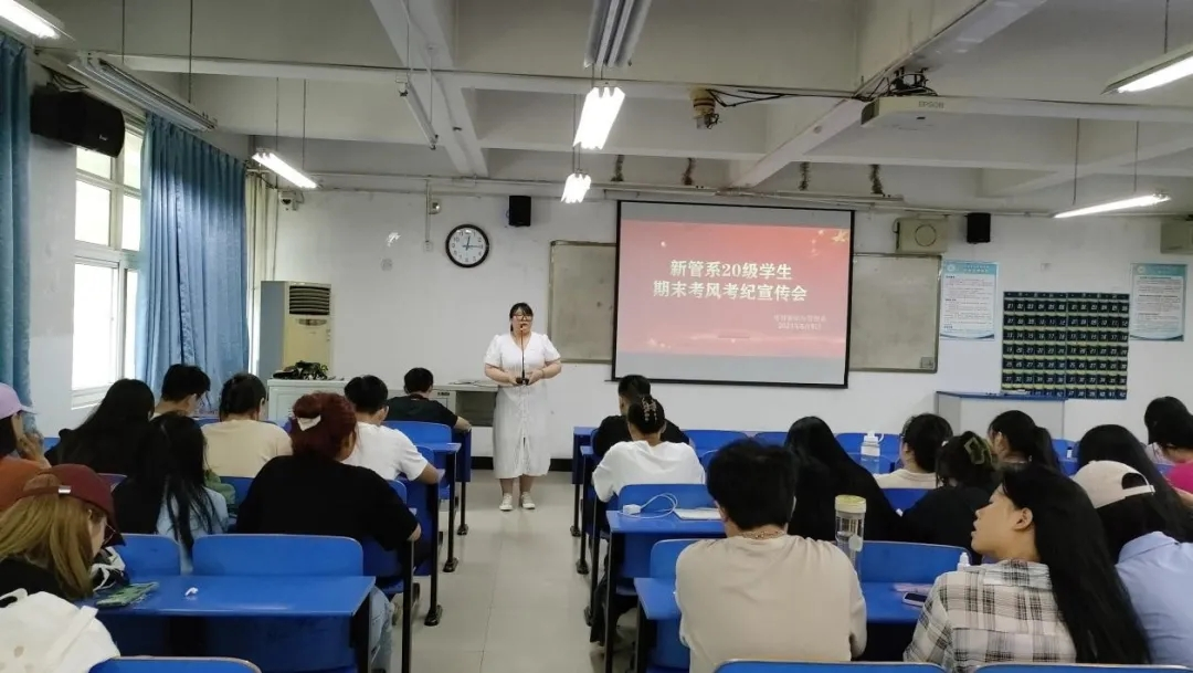 为进一步强化考风考纪和诚信宣传教育,加强学风建设,营造文明、诚信考试的良好氛围,同时为了提高学生的思想道德修养,6月9日,我系辅导员张静老师为我系学生召开了考风考纪教育主题班会。