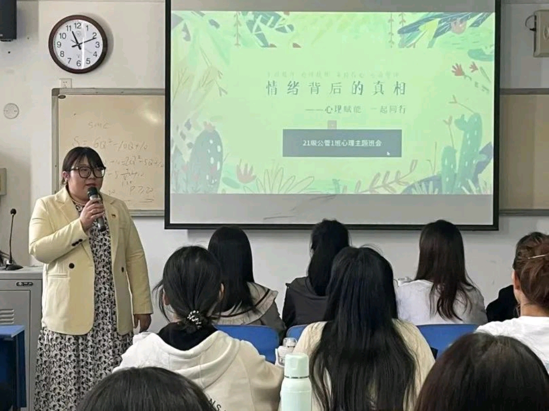 2023年5月24日上午十一时,新管系在综合楼403教室开展以“情绪背后的真相——心理赋能,一起同行”为主题的心理主题班会,本次主题班会由21级公管1班参加,辅导员张静老师主持。