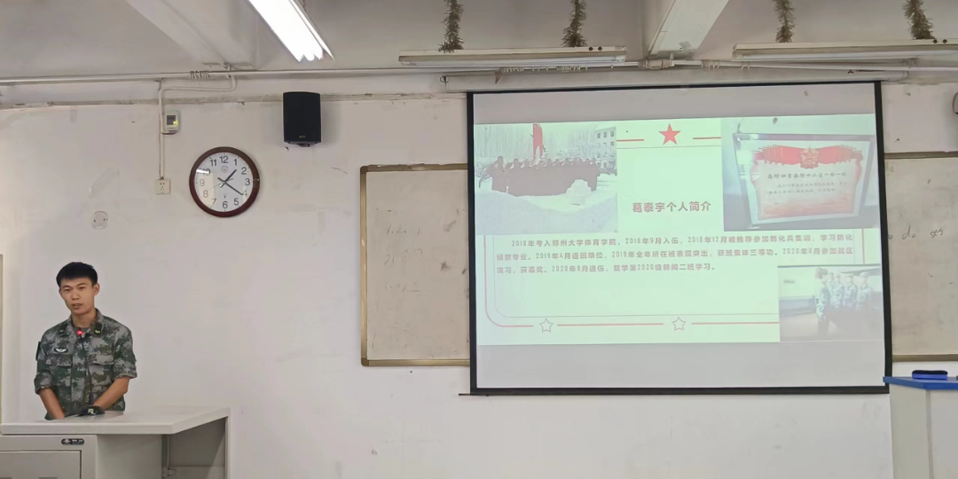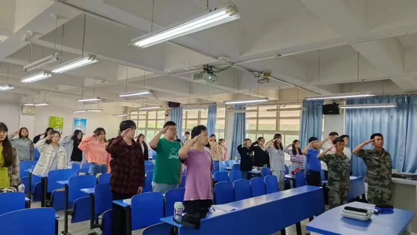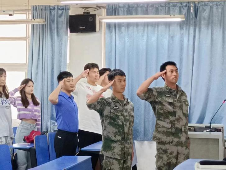 会议后半程,王龙老师分别请我系退伍军人葛泰宇同学和赵家祥同学向参与培训的同学分享他们军队的生活日常以及军旅感悟,在军队种菜、出海、出境……这些都无不让同学们向往和敬仰。最后在赵家祥同学的讲解和带领下, 参与培训的同学向所有为国奉献的人民子弟兵敬礼以表敬畏和赞美。