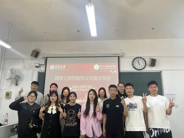 紧接着,两单位学生代表分别从思想引领、政治建设、组织建设、作风建设、活动开展等方面进行了座谈交流,大家积极互动进行交流,不仅促进了我系团总支与河南大学体育学院的深入了解与合作,也为双方建立长久的友谊与联系奠定了坚实的基础。