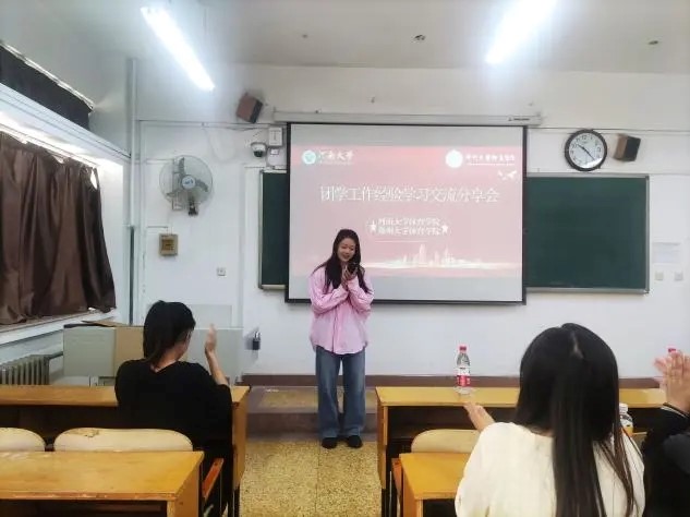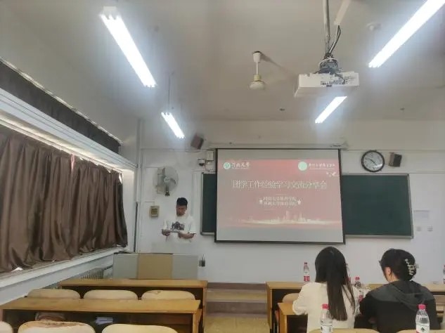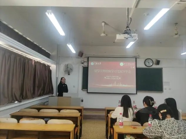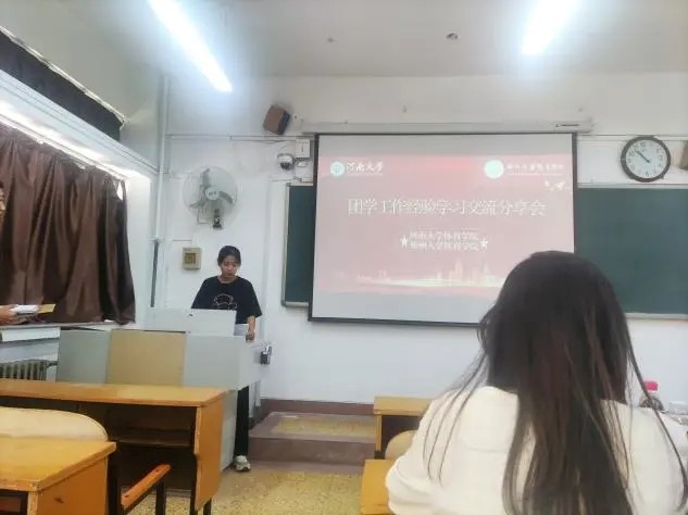 随后,我系青马工程学生代表与河南大学体育学院的团学干部代表在河南大学明伦校区综合楼201教室进行了现场交流研讨会。本次会议中,两院系团总支副书记首先就双方院系历史沿革、专业特色、工作经验等方面进行了深入的交流和分享,通过对上一年度团学工作中的亮点总结,进行了具有两单位工作特色的分享活动。