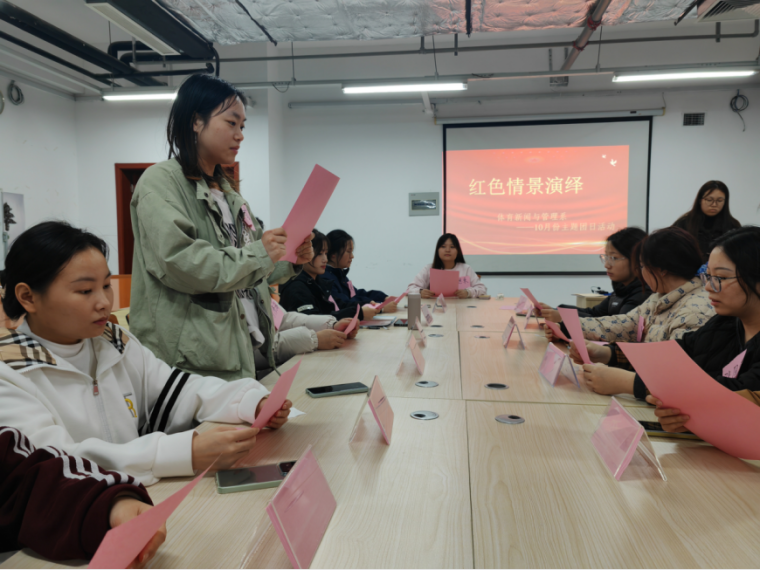 为培养团员青年爱国主义精神,传承红色基因,赓续红色血脉,10月22日晚上7点,我系团总支在图文信息楼617组织团员代表开展十月主题团日活动。本次活动以“红色情景演绎”为主要形式,选取《红船会议》历史片段进行角色扮演,通过沉浸式体验,让团员在历史场景中感悟革命先辈的精神力量。
