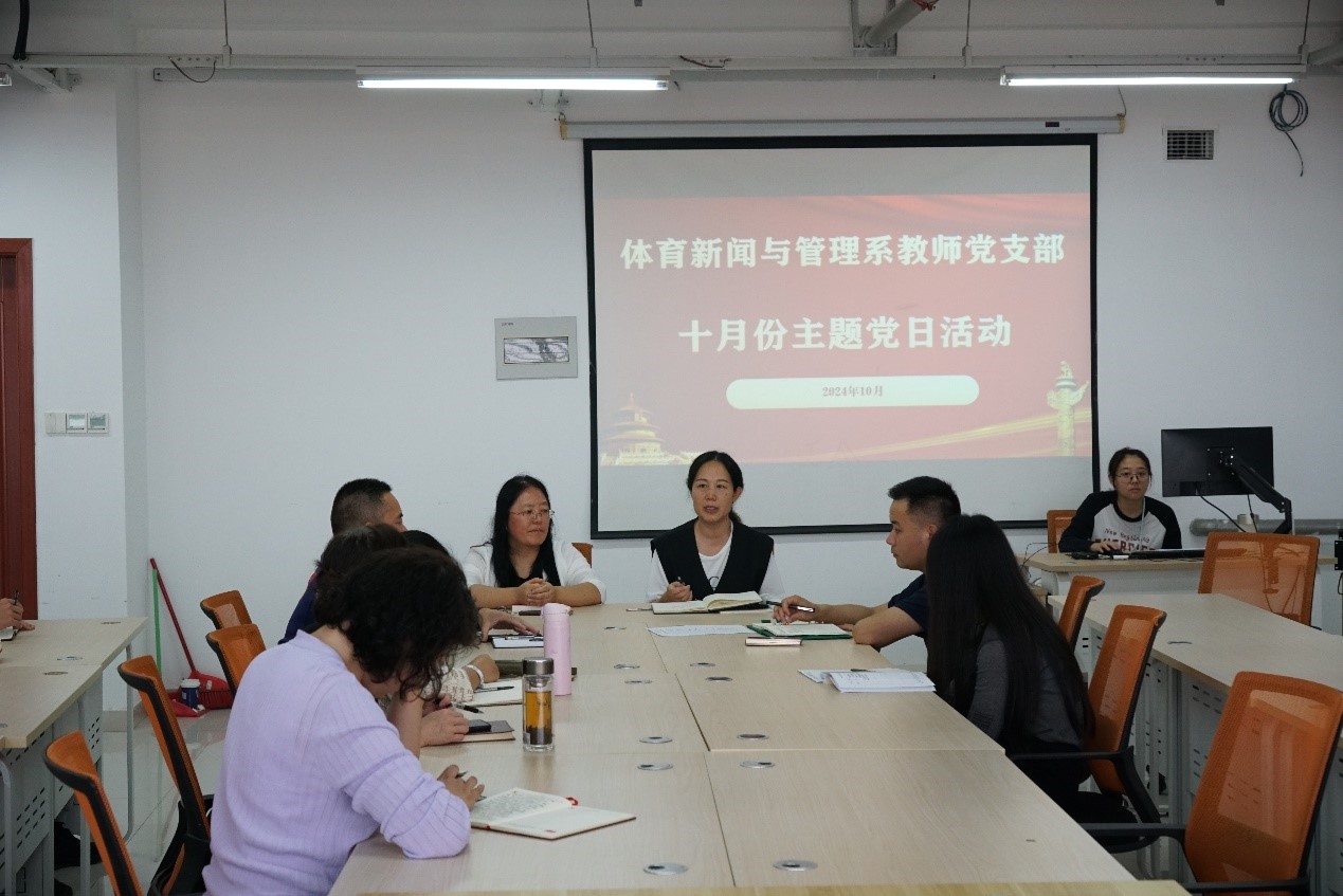 针对学习党的二十届三中全会《中共中央关于进一步全面深化改革、推进中国式现代化的决定》,体育新闻与管理系10月15日在图文楼617举行了教师党支部主题党日活动。教师党支部全体党员参与此次活动。