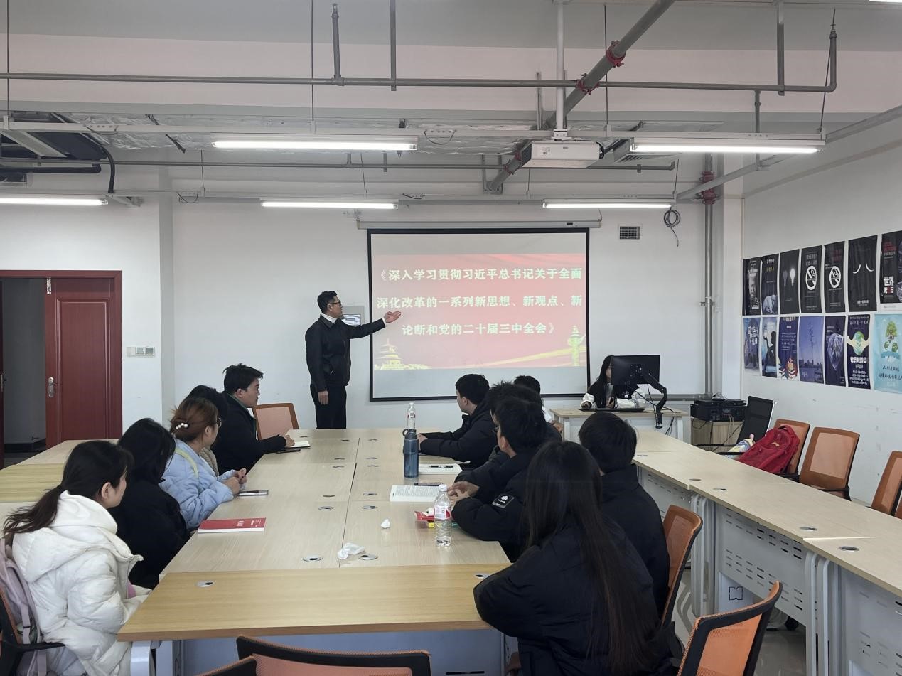 为深入学习习近平新时代中国特色社会主义思想,全面贯彻党的二十大精神,强化我系学生党员党性意识。11月26日上午,我系学生党支部在图文楼617开展学习《深入学习贯彻习近平总书记关于全面深化改革的一系列新思想、新观点、新论断和党的二十届三中全会》主题党日活动。会议由辅导员王松老师主持,新管系在校党员参与。