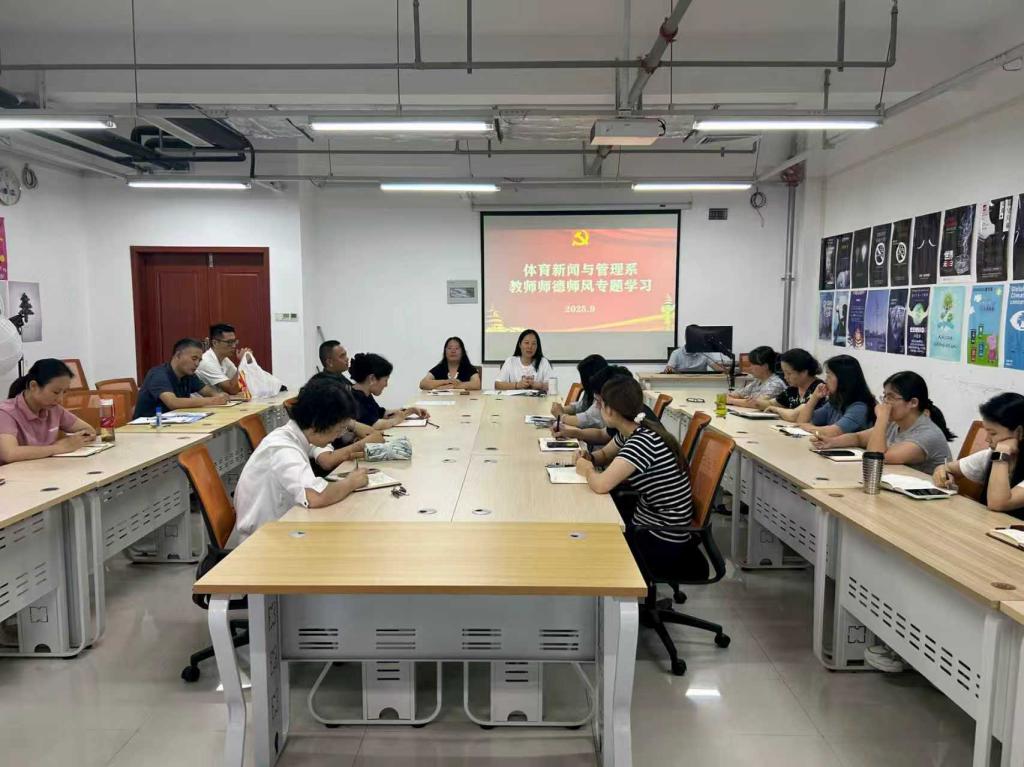 9月3日上午11:20,新闻与管理系教师党支部第三季度党员大会在图文楼617会议室举行。会议由系党总支书记郜攀峰主持,全体教师党员参会。