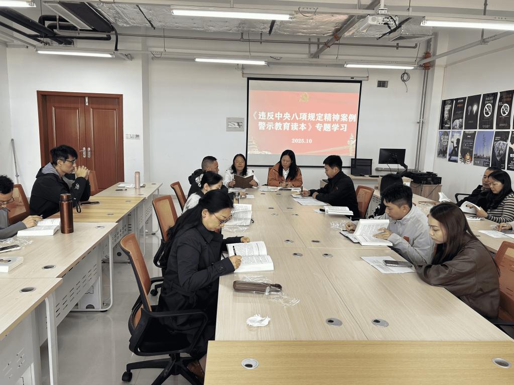 10月14日教师党支部召开第四季度党员大会,组织开展《违反中央八项规定精神案例警示教育读本》专题学习,会议由党支部书记郜攀峰主持全体党员教师参加。