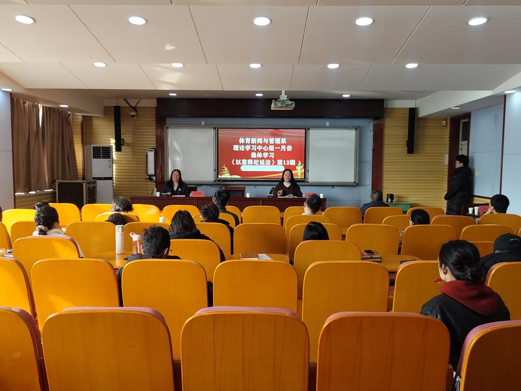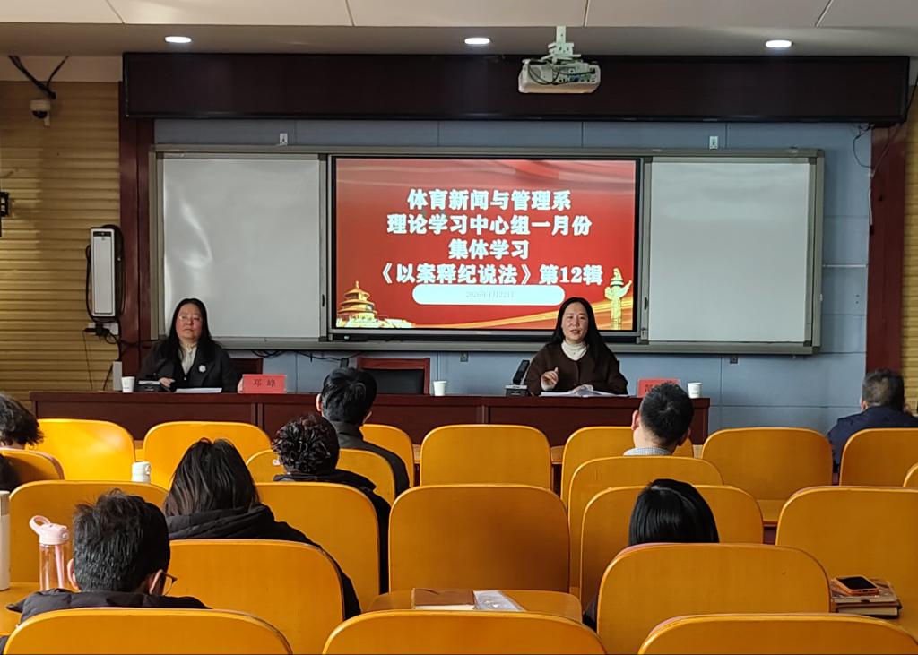 1月22日,体育新闻与管理系理论学习中心组一月份集体学习在教学楼304召开,专题学习《以案释纪说法》第12辑。系党总支书记郜攀峰主持会议,系全体教师、教师党员参加学习。