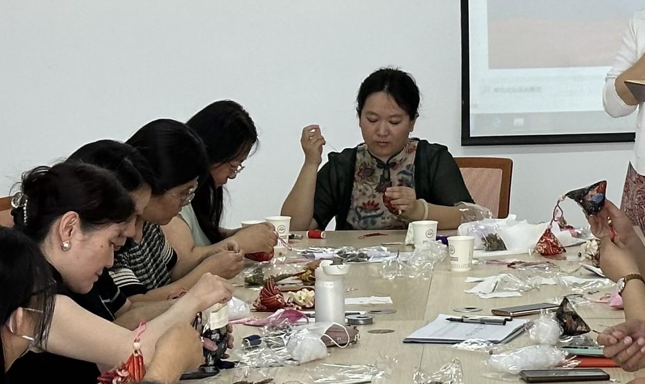 为弘扬中华民族优秀传统文化,丰富师生精神文化生活,营造良好节日氛围,在端午节来临之际,我系组织开展了“清香飘十里,巧手做香囊”手工制作活动。本次活动邀请了民间手工艺人朝颜老师进行讲解与指导,全体教师及学生代表参加了活动。