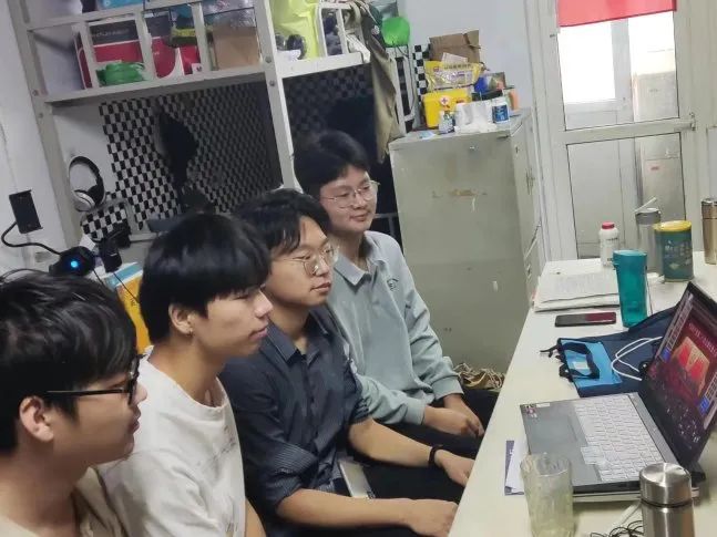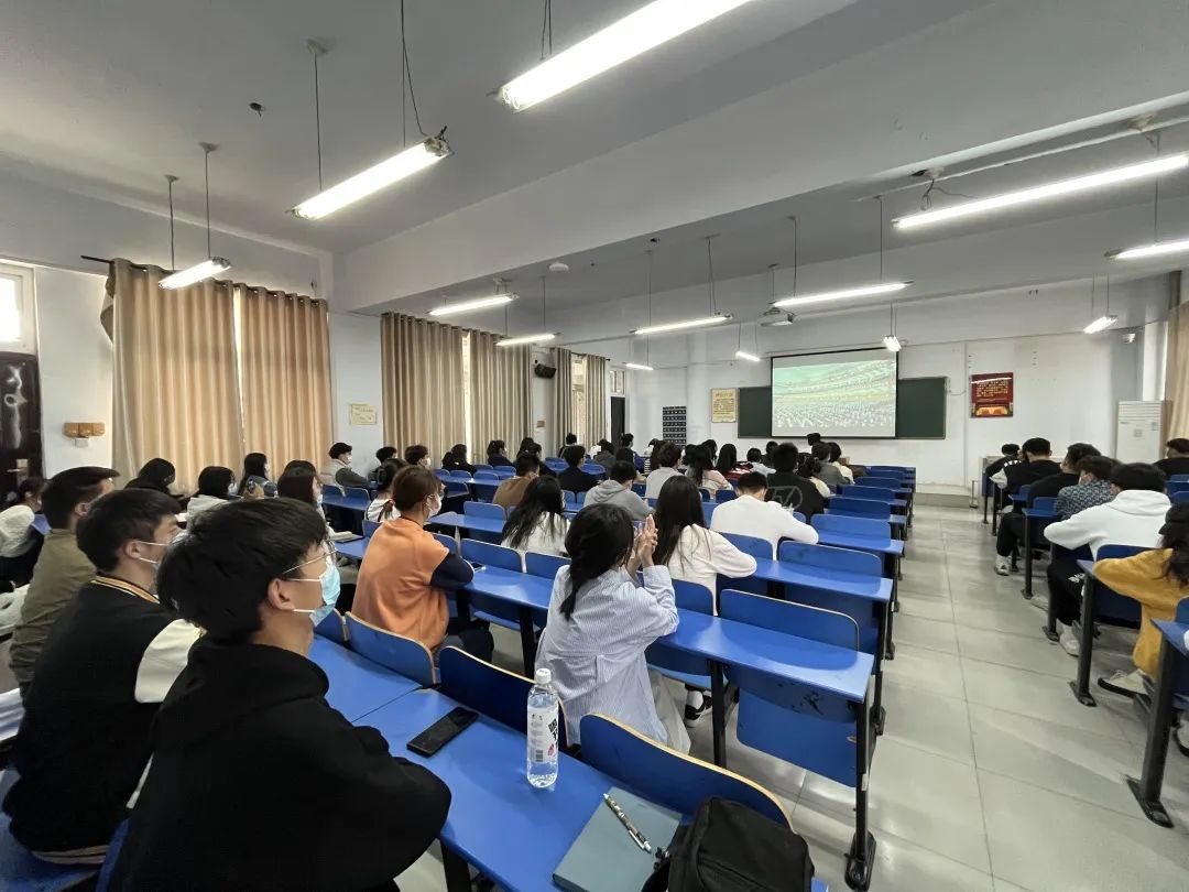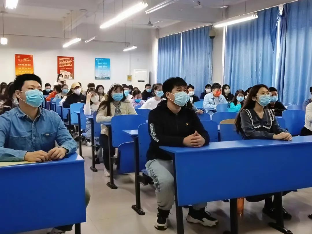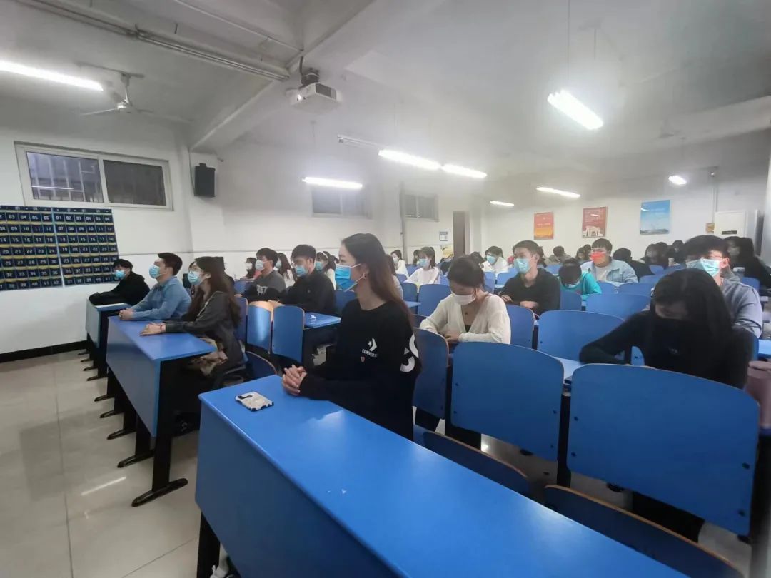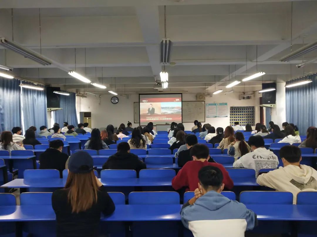 (我系部分学生在王龙老师的带领下在教室观看直播)