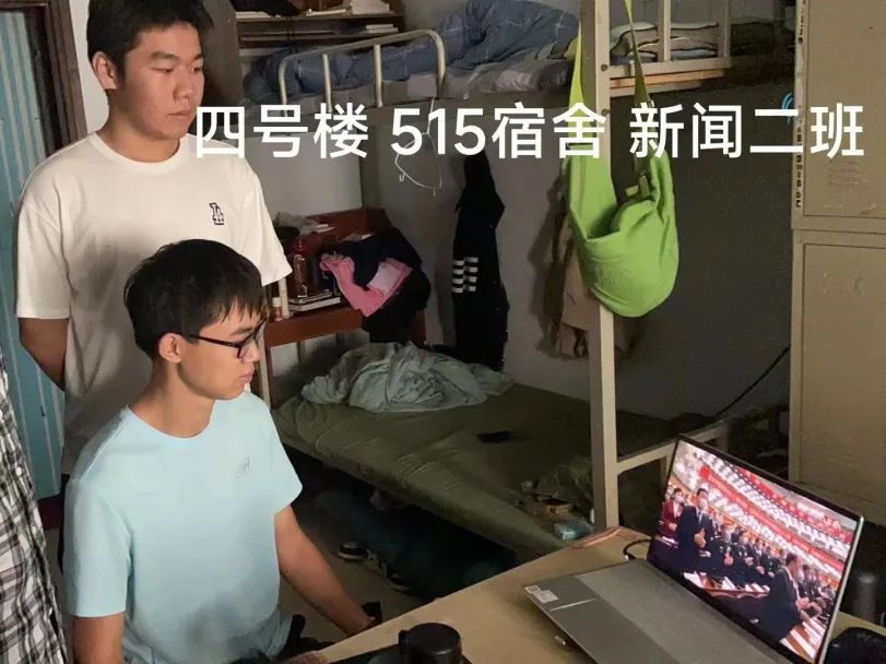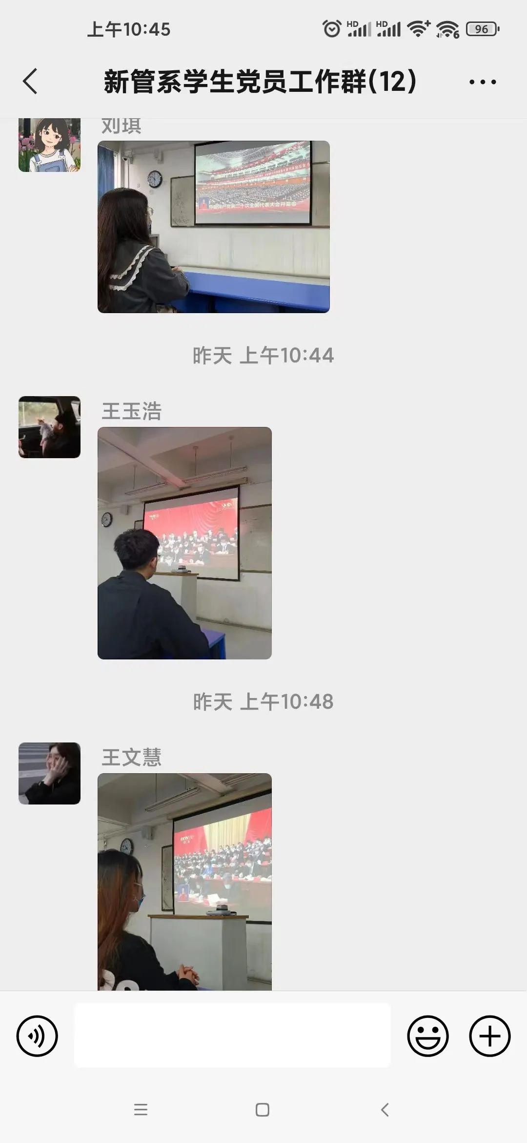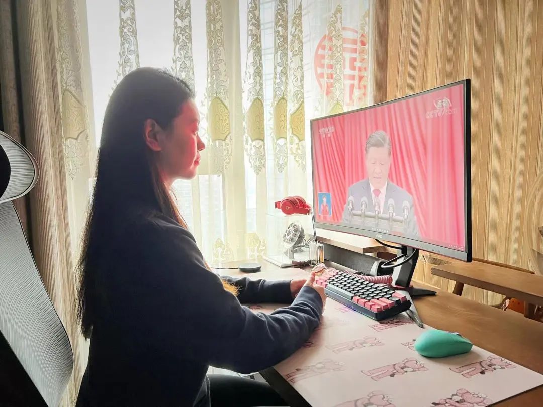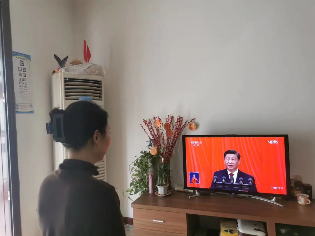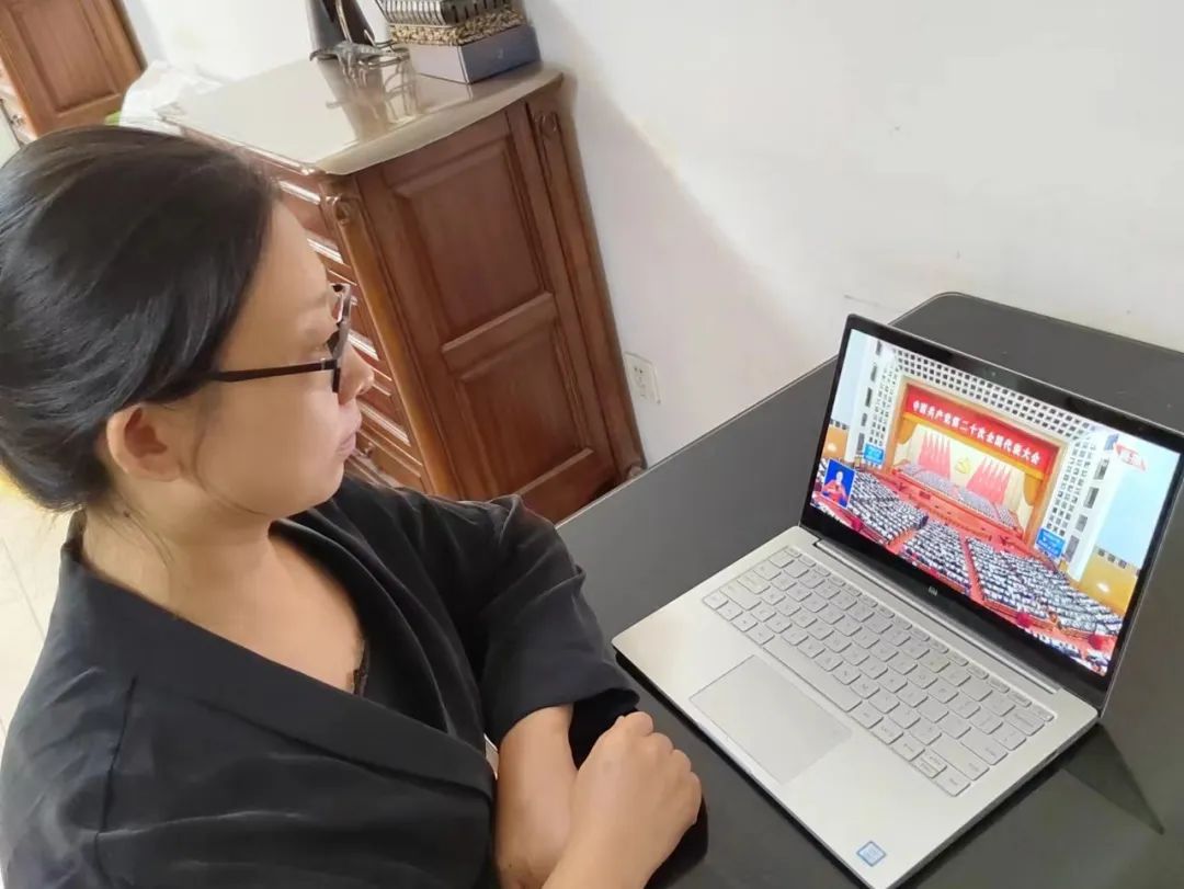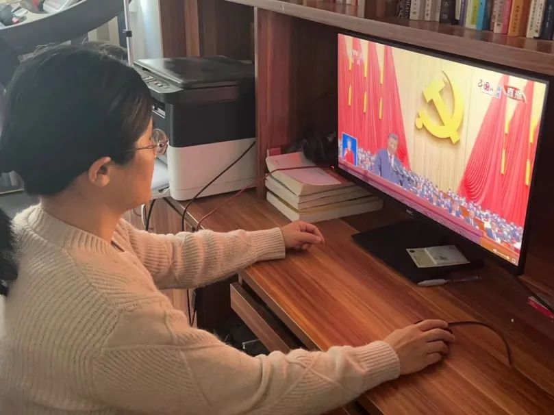 为响应学院防疫要求,我系教师居家办公,在自家观看党的二十大直播;学生党支部观看直播。