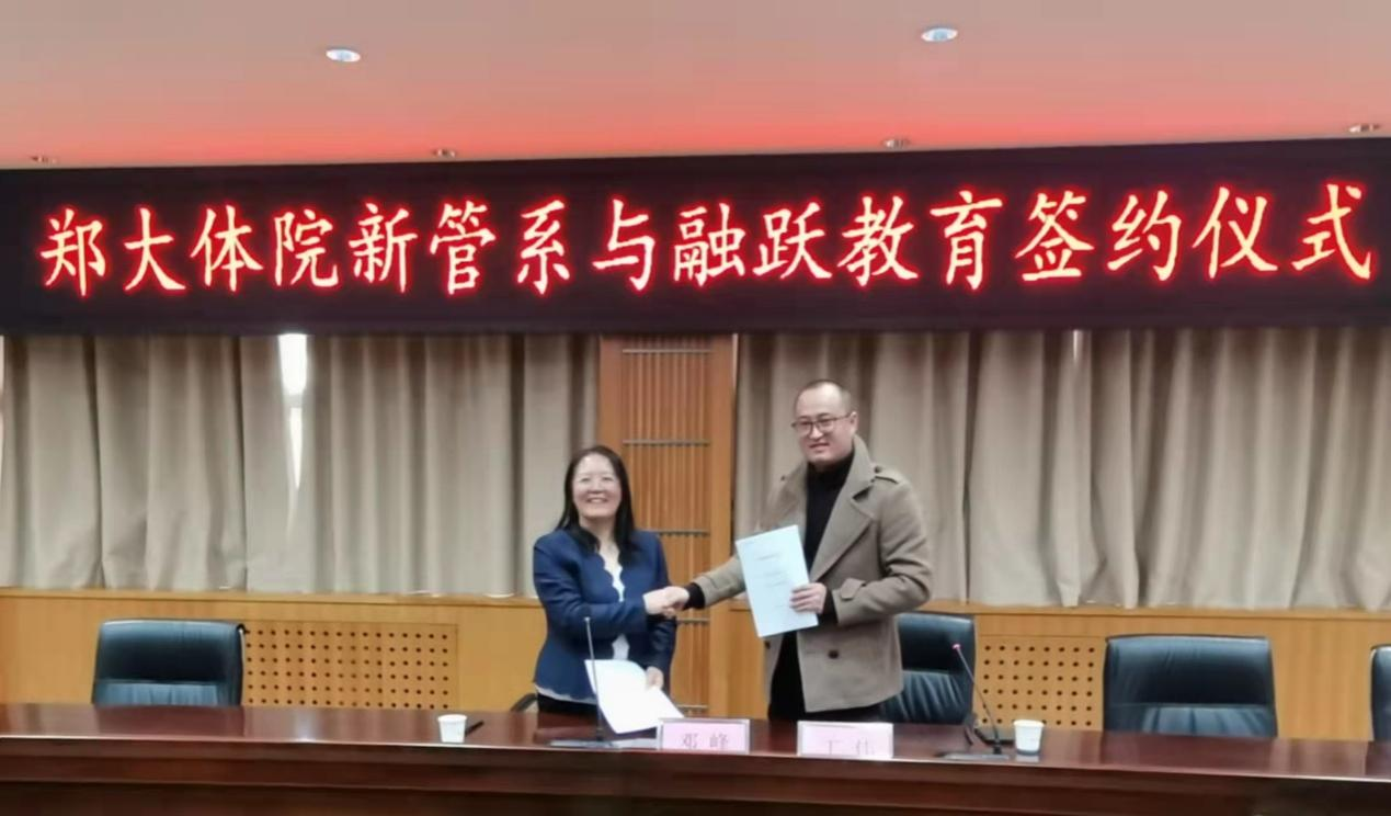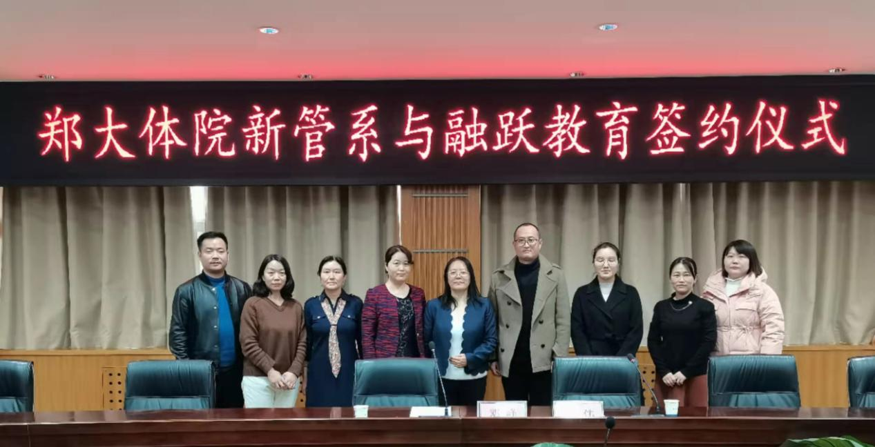 2021年12月2日,新管系与河南融跃教育科技有限公司合作框架协议签约活动在郑州大学体育学院综合楼二楼第三会议室举行,新管系主任邓峰同志、融跃教育丁伟等出席此次签约仪式。