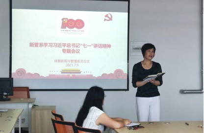 为全面贯彻落实习近平总书记“七一”讲话精神,深入学习党史,回顾党的光辉历程,我系党总支特于7月9日上午召开了学习习近平总书记“七一”讲话精神专题会议,会议由新管系党总支书记赵环主持,我系全体教师党员参加了本次专题会议。