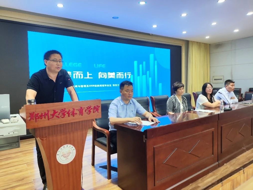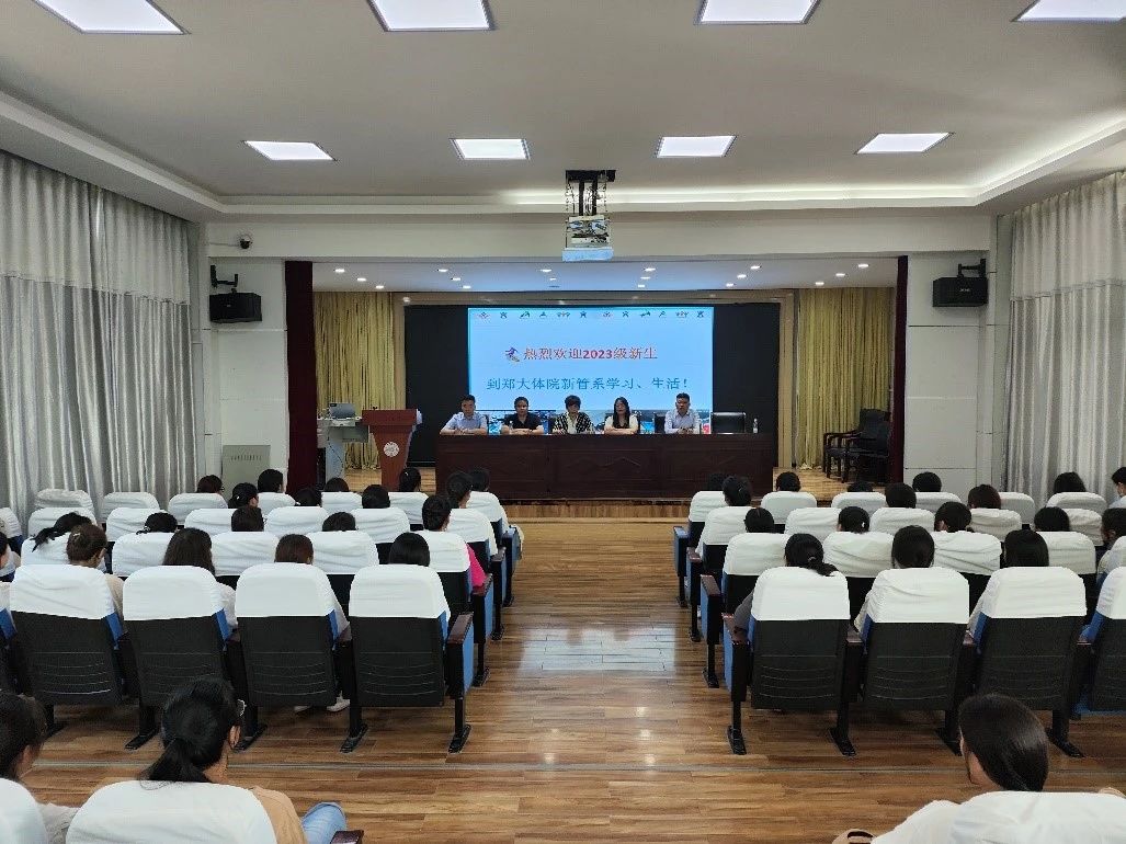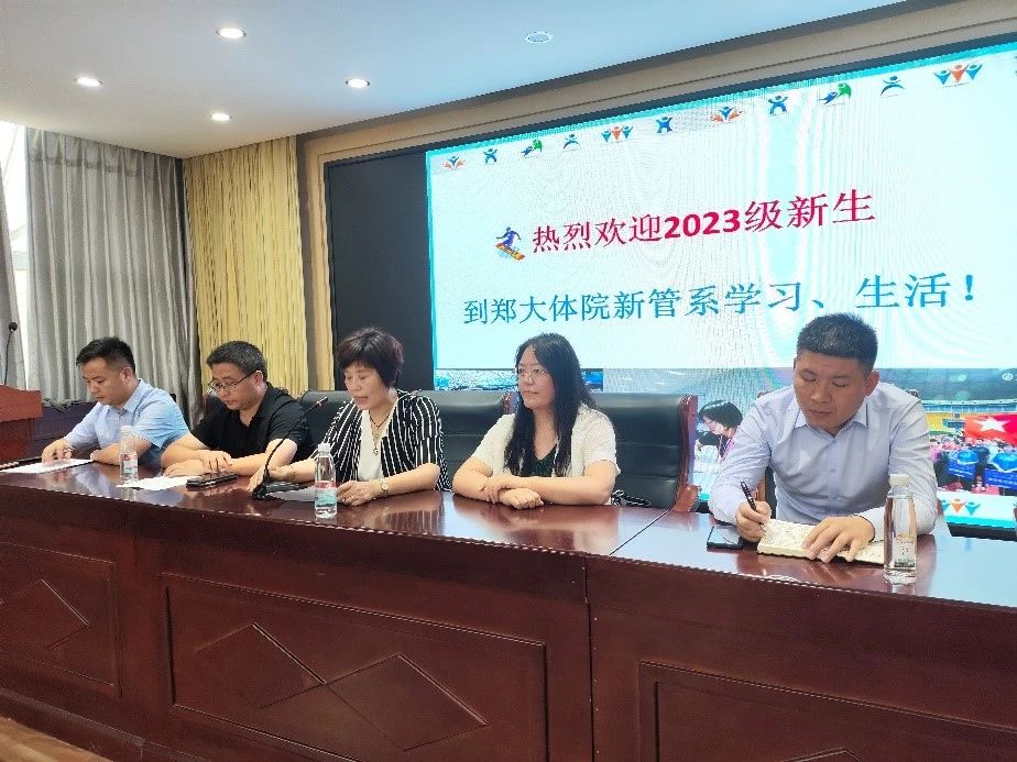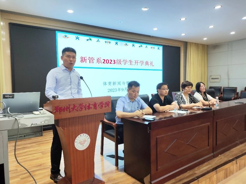 9月4日下午,新管系在登封校区举行了2023级新生开学典礼。系党总支书记赵环、系主任邓峰等四人出席了典礼。典礼由新管系体育产业教研室王志豪老师主持。