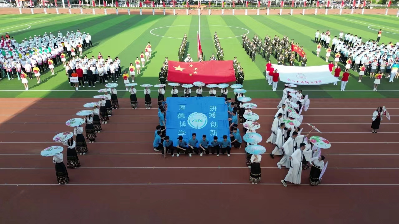 在阳光明媚的操场上,我系方块队由我系主任邓峰以及老师带领,他们身着汉服,手撑纸伞,向主席台进发。他们昂首挺胸,步伐稳健,以整齐的队形向前迈进,每个人的步伐都坚定有力,彰显着我系同学们的决心和自信。