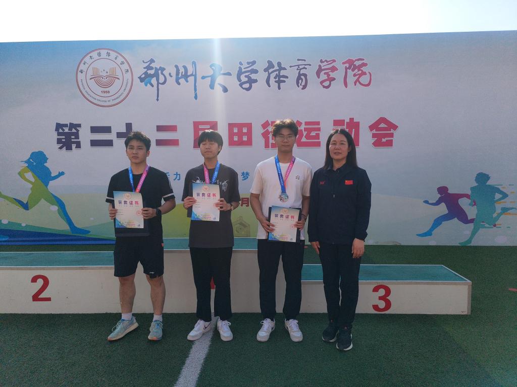 齐心协力,共创佳绩。我系冒守陇、王昱翔、李坤轩、侯鑫洋同学在甲组男子4×100米比赛中荣获第二名。