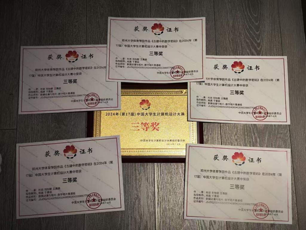 2024年8月13日-8月17日,由中国大学生计算机设计大赛组织委员会主办,厦门理工大学/厦门大学承办的“2024 年(第 17 届)中国大学生计算机设计大赛”在厦门理工大学举行。体育新闻与管理系2021级新闻一班杜岩、2020级新闻二班刘怡默、2021级公管二班王晨晓的参赛作品《古建中的数学密码》获得国赛三等奖。
