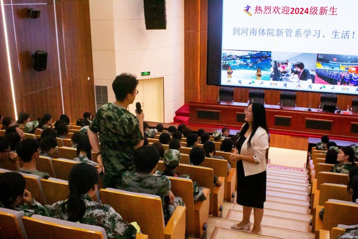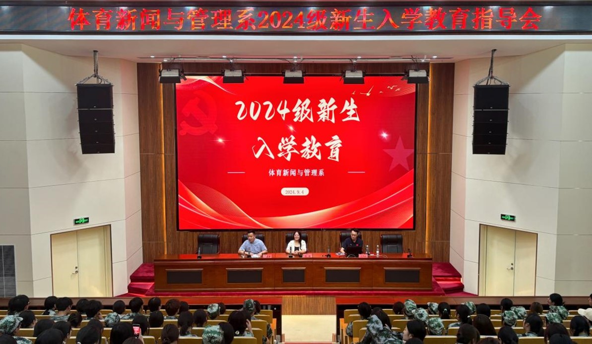 9月4日上午,体育新闻与管理系在图文信息楼报告厅开展2024级新生入学教育指导会。体育新闻与管理系主任邓峰、大河报一豫视频教育体育中心副主任王玮皓、系党政办公室主管王志豪,2024级辅导员陈湛若及全体新生共同参加会议。