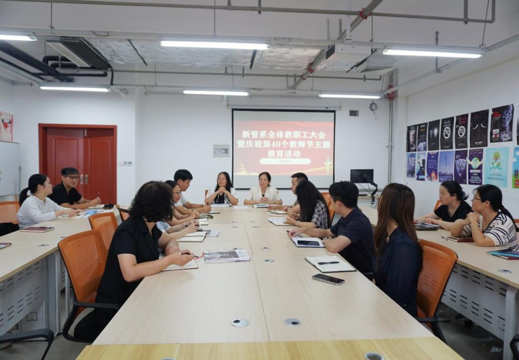 2024年9月10日,在体育新闻与管理系邓峰主任主持下于图文信息楼617举行了新管系全体教职工大会暨庆祝第40个教师节主题教育活动。