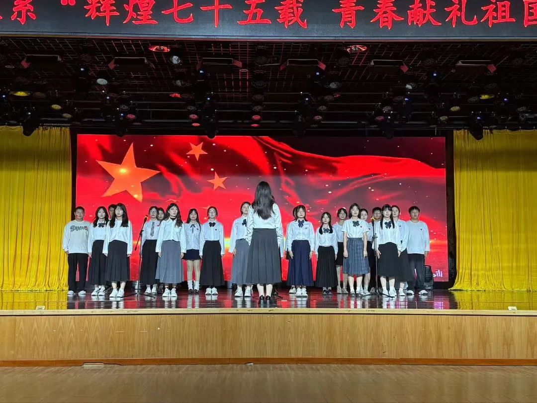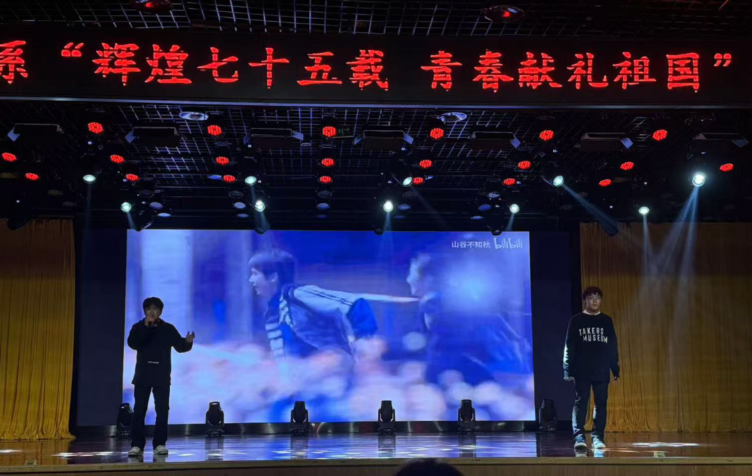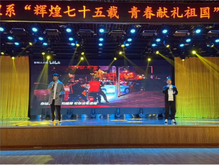 为庆祝新中国成立75周年,深入贯彻爱国主义教育,激发爱国热情,传承红色基因,我系于10月22日19点在大学生活动中心举办“辉煌七十五载,青春献礼祖国”青年歌手大赛。我系党总支书记郜攀峰、系主任邓峰、系办全体教师,22级、23级、24级无课学生参加此次活动。