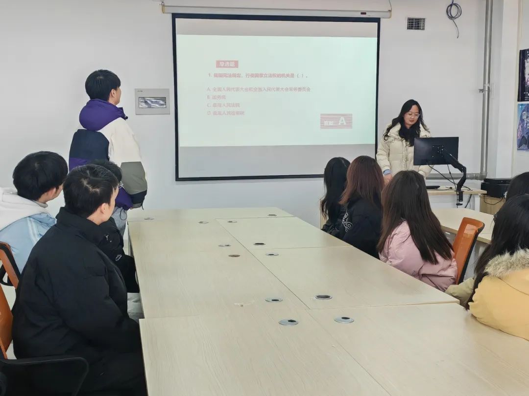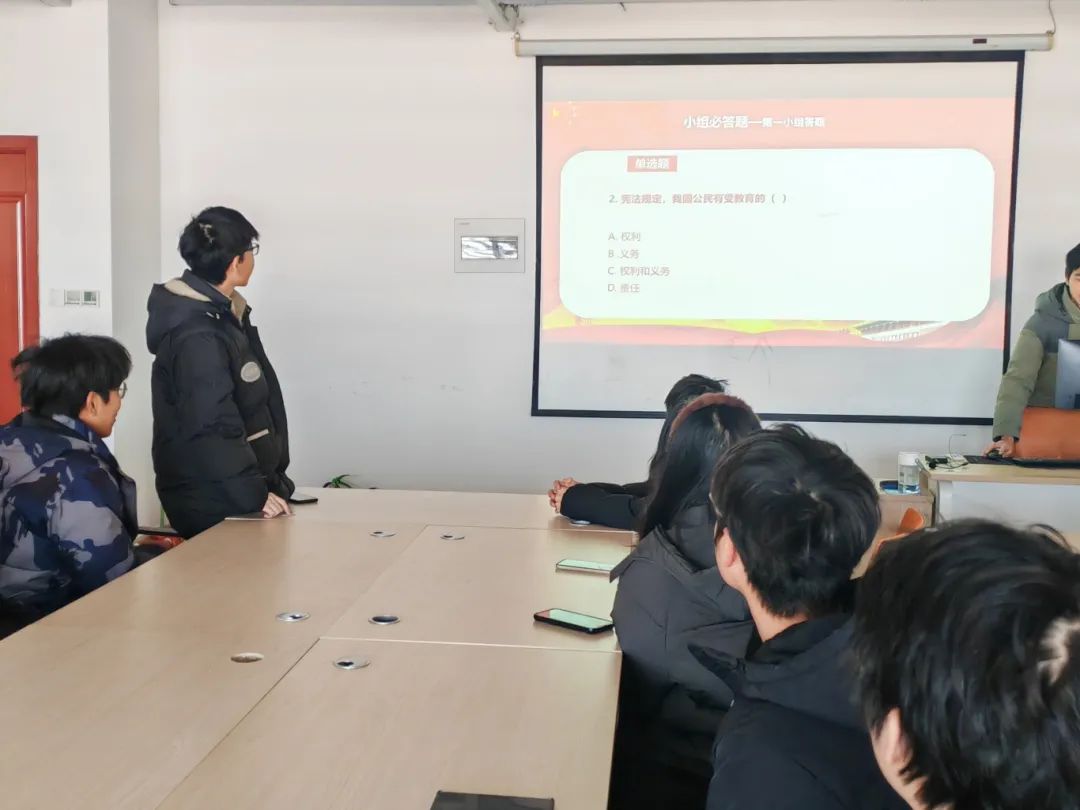 活动伊始,我系团总支副书记杞正阳向同学们介绍了本次学宪法知识竞赛的规则。各位选手被分为两个小组,竞赛以小组对抗的形式展开。在竞赛过程中,各位选手胸有成竹、积极抢答,并针对不同的题目发表自己的见解。