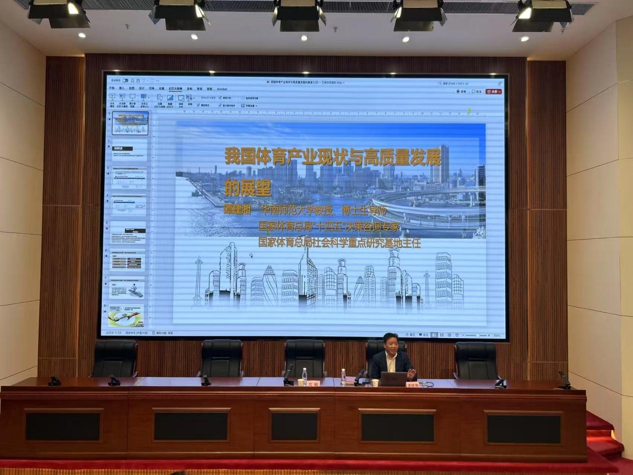 3月26日下午,由河南体育学院体育新闻与管理系承办的名家讲座报告会在图文信息楼报告厅举办,此次讲座特别邀请到华南师范大学教授、博士生导师谭建湘以“我国体育产业现状与高质量发展”为主题,为学院师生带来一场兼具理论深度与现实指导意义的学术盛宴。报告会由体育新闻与管理系主任邓峰教授主持,全系有220余名师生参加。