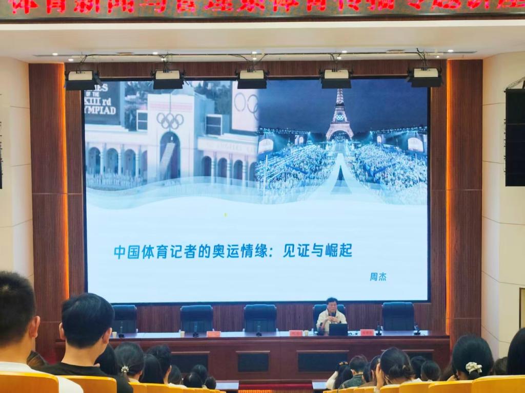 周杰主任以“中国体育记者的奥运情缘:见证与崛起”为主题进行开场演讲,结合自身参与多年奥运报道的实战经历,梳理了中国体育新闻从1984年洛杉矶奥运会仅30名注册记者到2024年巴黎奥运会超过1100名注册记者参与的历史进程。他通过典型案例,系统阐述我国媒体在国际赛事中突发事件响应、国际传播协作与话语权构建方面的显著进步,并特别强调当代体育新闻工作者应具备跨文化沟通、多媒体叙事与快速反应的综合素养。