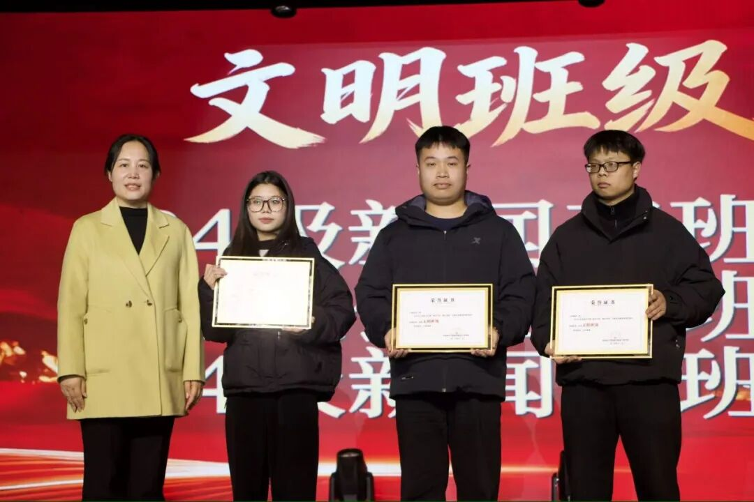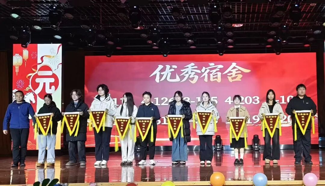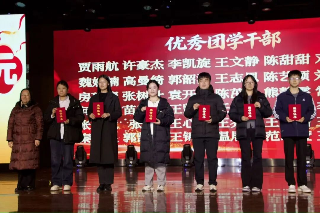 表现卓越的集体和个人。大会依次表彰了2025年度秋季学期文明礼仪教育系列活动“文明班级”、优秀团学干部、优秀宿舍等。系领导为获奖集体和个人颁发荣誉证书与奖牌,鼓励我系学子在新的一年里继续砥砺前行,再创佳绩。