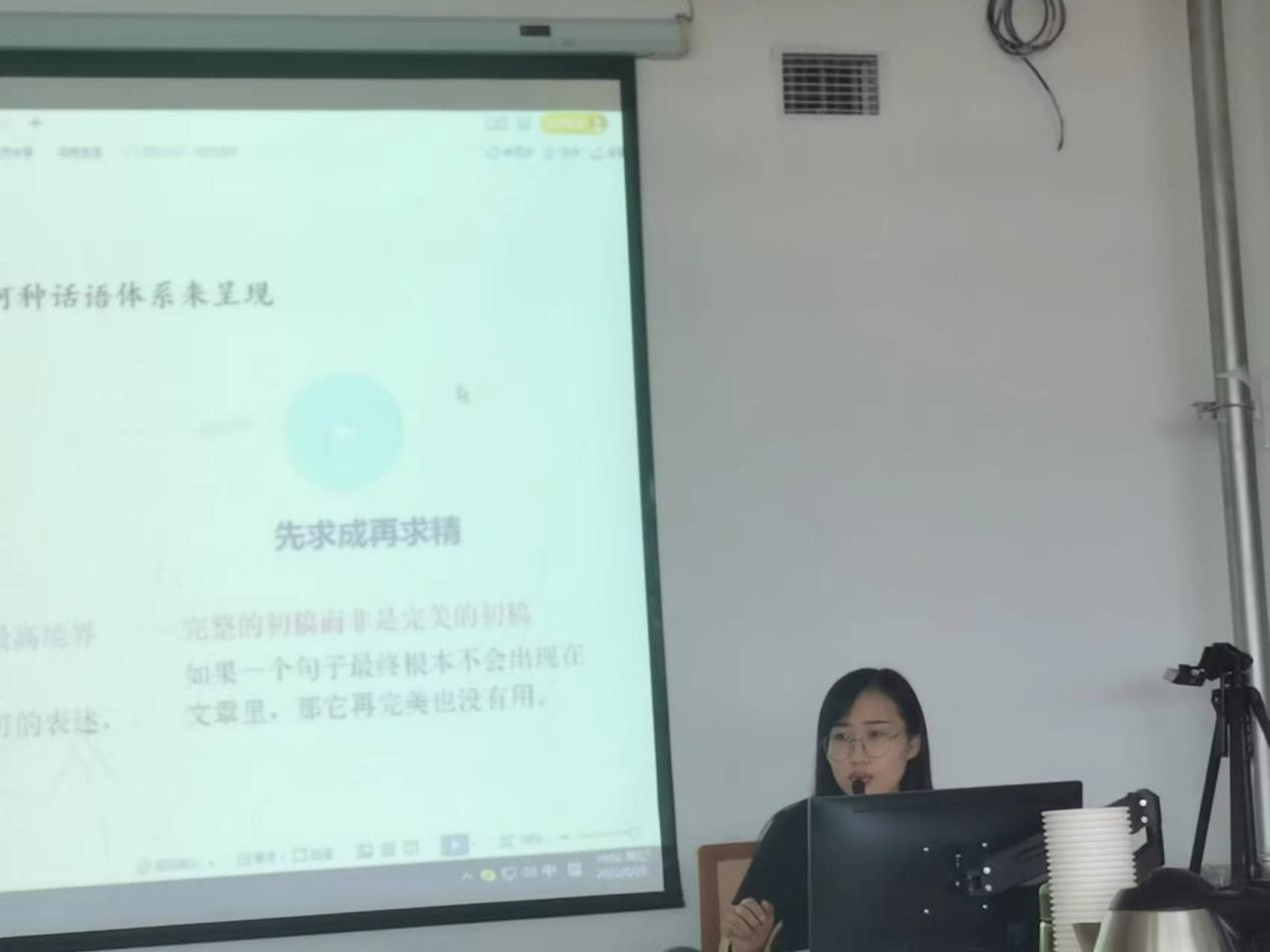 任玥姗博士结合自身经验从如何读书、写作之道、发表之路三方面进行阐述,重点针对论文写作问题,从选题之道、引言写作、框架搭建、文字表述之道、好文不厌千回改等方面提出了具有指导性、针对性的意见和建议。任玥姗博士的讲座深入浅出,引人入胜,很多老师表示收获颇丰。
