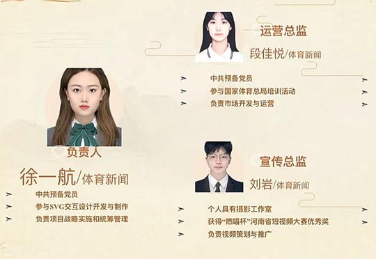 个人经历:2022 -2023 学年曾任河南体育学院登封校区融媒体部负责人