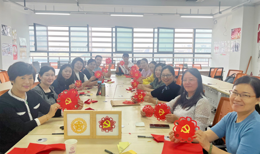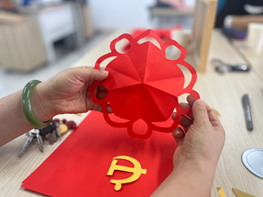 活动期间,由系主任、教师党支部书记邓峰带领党员集体学习《郑州大学体育学院关于“中秋、国庆”双节期间严守纪律廉洁过节的通知》。随后,特邀民间剪纸艺术家走进党主题党日活动现场。开展了“迎中秋、庆国庆”感受传统文化剪纸活动。剪纸艺术是我国传统的民间艺术,富含寓意,浸润着中华传统文化的气息。一双巧手一张纸,一片丹心一份情。新管系教师党员们用最炙热的心怀裁出对祖国母亲最真挚的情感。“寄”初心、“绘”红心,新管系教师党员们用最真挚的愿景庆国庆、颂党恩。