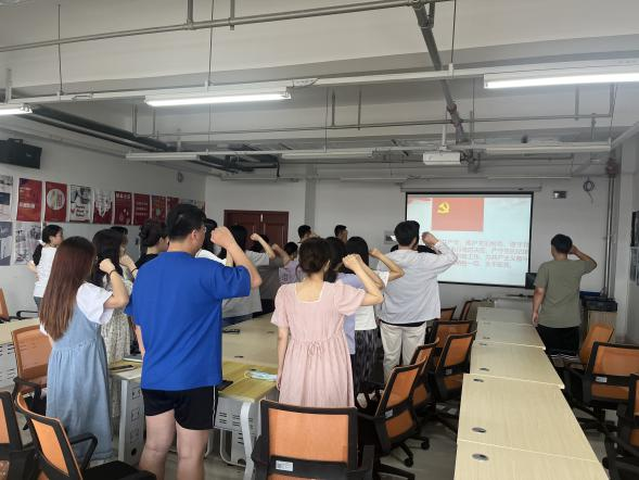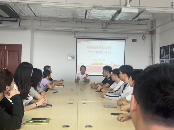为庆祝中国共产党成立102周年,2023年7月3日,新管系学生党支部开展了“重温入党誓词,弘扬建党精神”的7月主题党日活动。