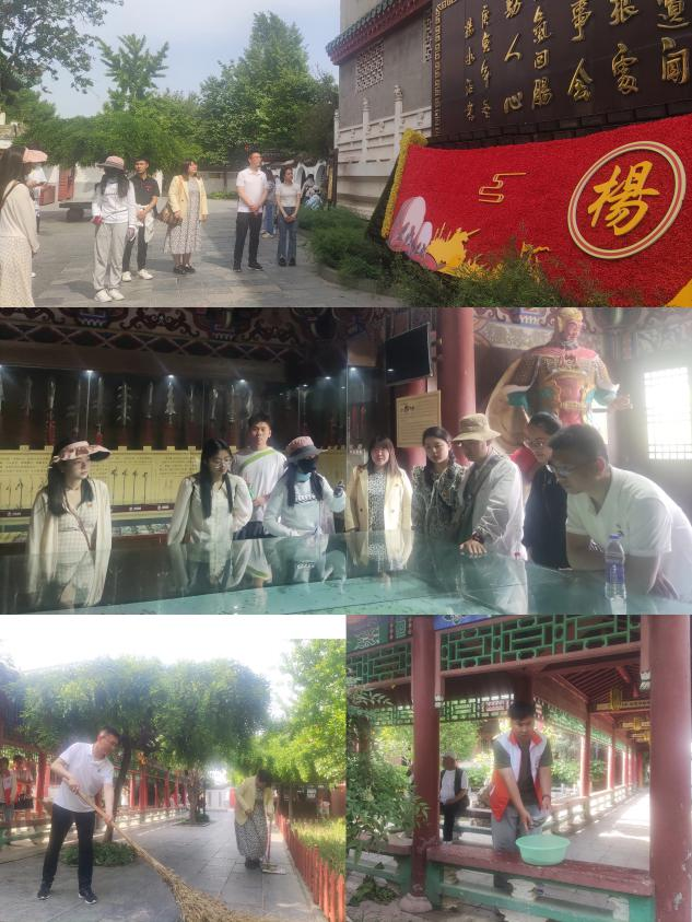 我支部分别前往河南大学、天波杨府党支部进行了观摩学习,就党团工作经验等方面进行了互动交流,参观了天波杨府的东院演兵场、中院杨家府邸和西院杨家花园三个部分,深入了解了北宋时期杨家将英勇抗辽、保家卫国的历史故事。交流学习后,在天波杨府党支部的组织下,我支部开展了志愿劳动服务活动,使园区环境变得更加整洁、美观。