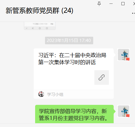 新管系教师党支部1月份开展学习“二十届中央政治局第一次集体学习时的讲话”活动。