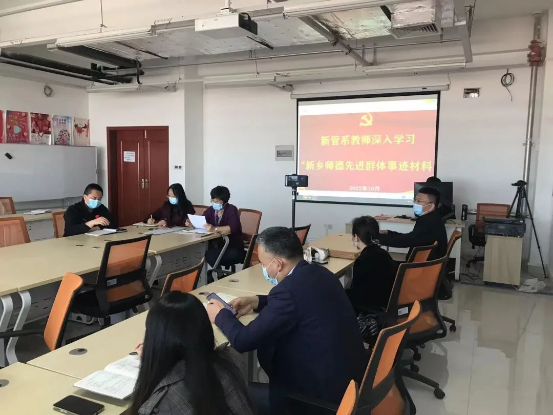 2022年10月11日上午,新管系教师党支部开展十月份主题党日活动。本次活动以党建和师德教育相结合。举办“喜迎二十大 新管更出彩”——“学习强国”党员答题挑战赛随后集体学习《中国共产党廉洁自律准则》、《中国共产党纪律处分条例》,及“新乡师德先进群体事迹材料”。活动由党总支书记赵环主持。