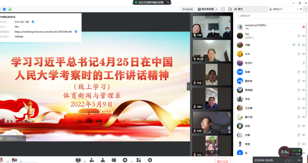 2022年4月25日,五四青年节来临之际,习近平总书记到中国人民大学考察,并在座谈会上发表重要讲话。为贯彻落实习近平总书记讲话精神,认真学习讲话内容,学生党支部于5月9日开展“学习习近平总书记在中国人民大学考察时发表的讲话”主题党日活动。受疫情影响,本次党日活动以个人自学、线上交流的方式进行。