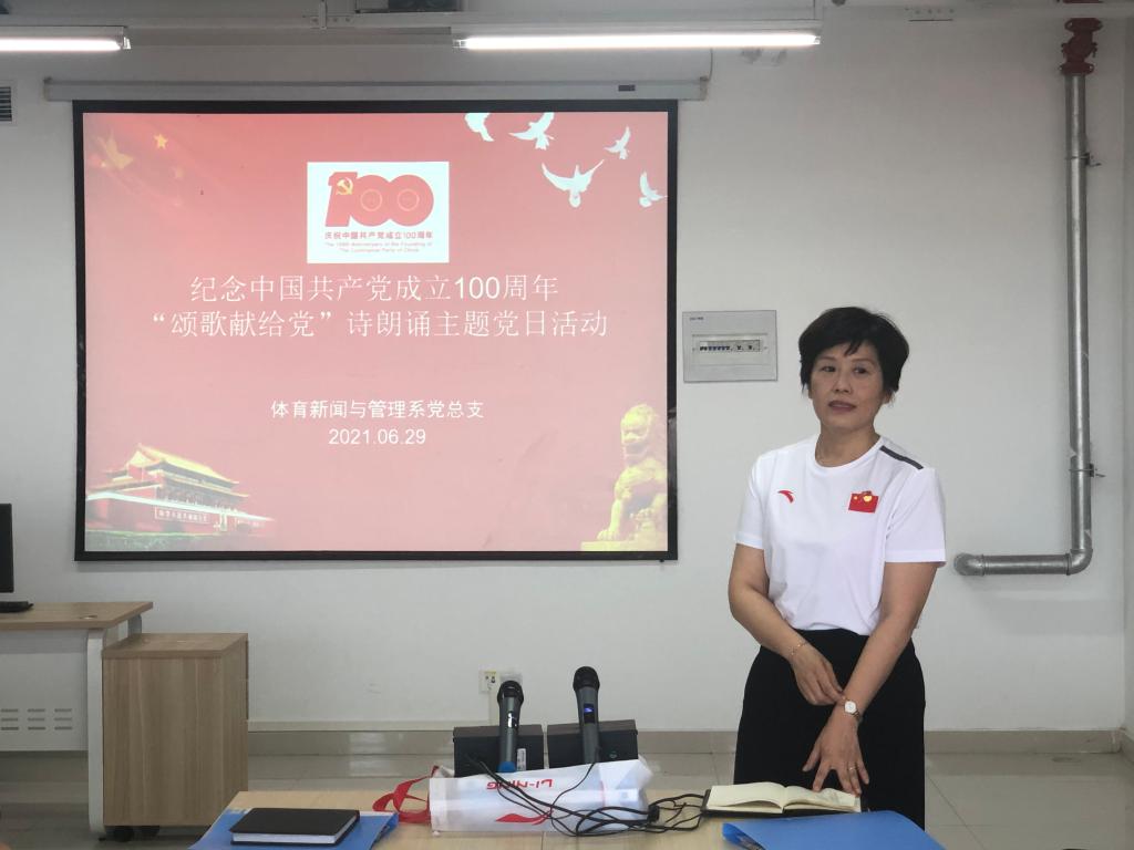 为庆祝中国共产党成立100周年,讴歌中国共产党百年的光辉历程和丰功伟绩,增强党员之间的凝聚力和执行力,6月29日下午,我系党总支特于党的百年生日前夕,举行了庆祝中国共产党成立100周年“颂歌献给党”诗朗诵主题党日活动。活动由新管系党总支书记赵环主持,我系系办、新闻教研室、管理教研室以及体育产业教研室四支教师团队参加。