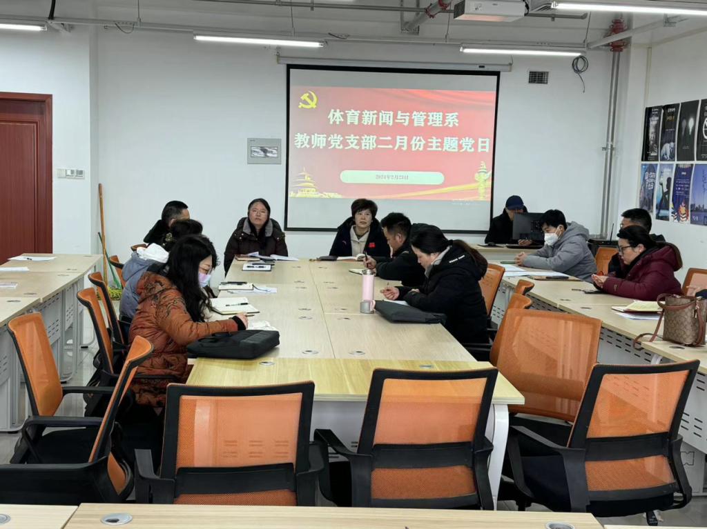 2023年2月23日,我系党总支开展了“体育强国,奋斗有我”主题党日学习活动。活动由系党总支书记赵环同志主持,我系全体党员教师参加了本次主题党日活动。