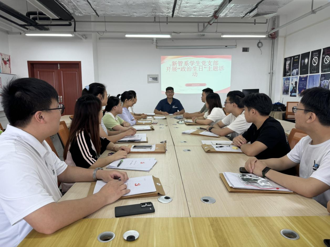 为深入学习习近平新时代中国特色社会主义思想,全面贯彻党的二十大精神,强化我系学生党员党性意识。6月24日下午,我系学生党支部在图文楼617开展“政治生日”主题活动。会议由辅导员王松老师主持,新管系全体学生党员参与。