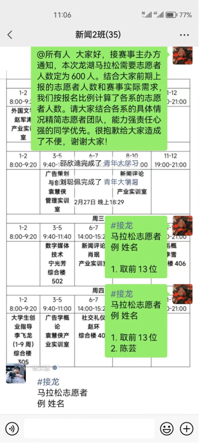 21级新闻2班团支部中13人积极响应团总支号召参与志愿