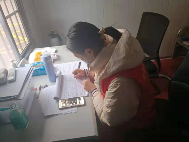 许馨予在许昌市魏都区河西社区在小区门口的疫情卡点处记录来往人群出入的相关信息