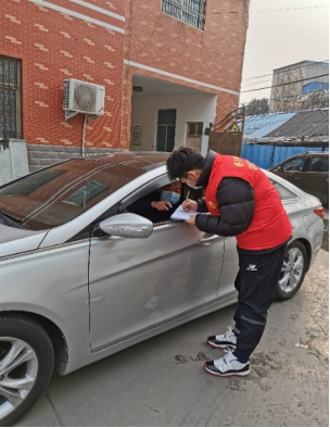 范菲凡在洛阳市洛龙区龙门石窟街道协助社区工作人员进行外返人员及车辆的登记