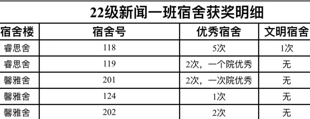 四、安全卫生方面 开展丰富多彩的教育活动,我班不同时期开展安全主题班会5次,通过讲解、演示和训练,对同学们开展宿舍用电等安全预防教育。积极配合学校爱国卫生活动安排,明确责任管理,落实每个班委的责任,同时加强生活委员监督职权。我班在校园的卫生优秀宿舍评比中共获卫生优秀宿舍14次,较差宿舍0次,此外,我班各宿舍宿舍长每周及时督同学们打扫宿舍卫生,自觉遵守宿舍的卫生值日安排合理分工。各寝室寝室长还会不定期带领全宿舍对该宿舍所在楼层进行清扫,为同学们营造舒适的环境。 |