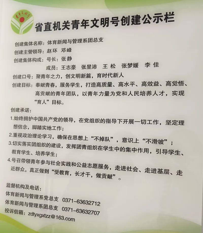 2021年10月,我系团总支启动河南省直机关青年文明号的申报与创建工作,创建主管领导为系党总支书记赵环、系主任邓峰,创建集体由我系团总支负责人张静担任号长,我系五位青年骨干教师王志豪、张昱沛、王松、张梦媛、李佳为集体成员。