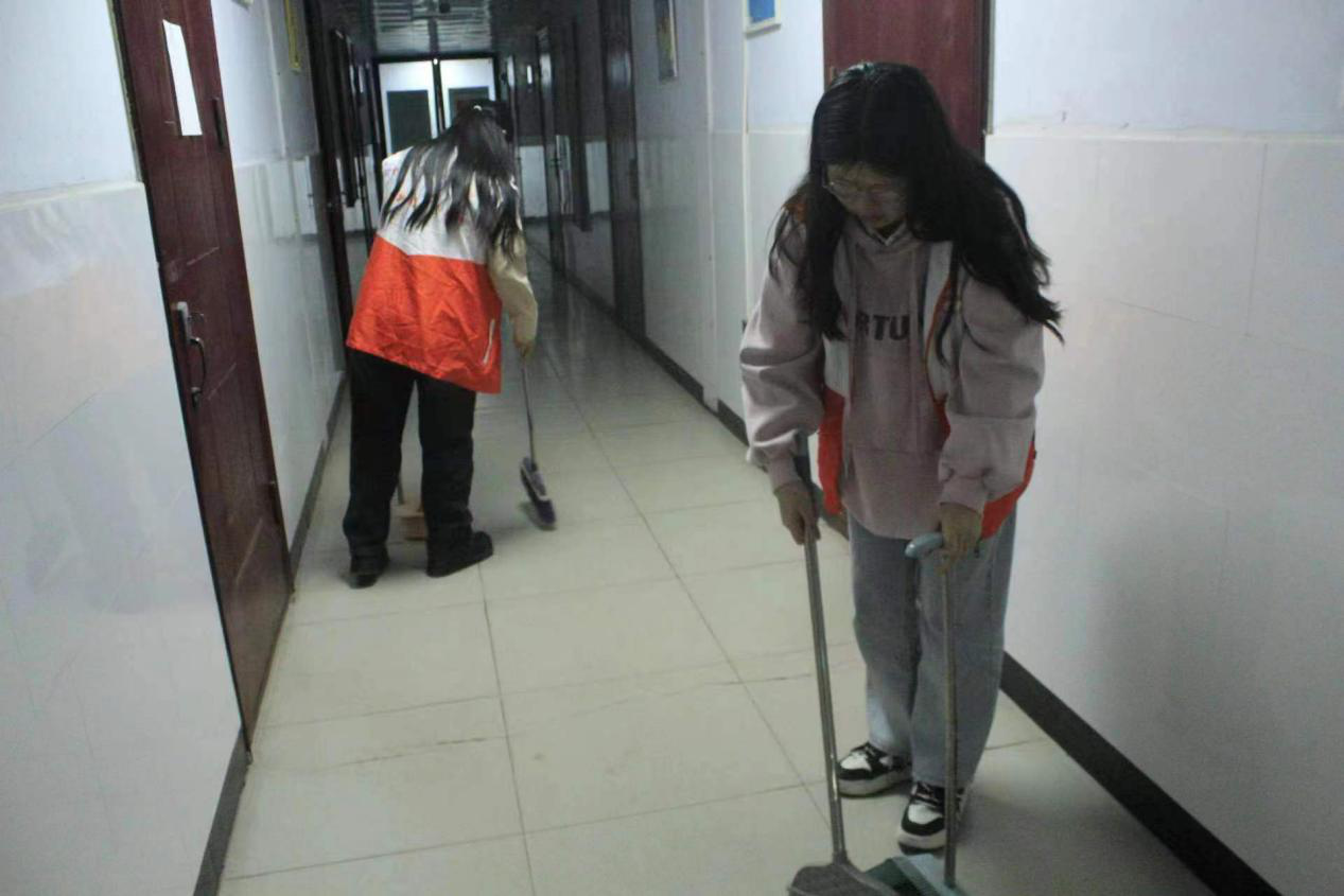 我系志愿者相互配合、分工合作、高效有序完成了此次卫生打扫,培养了大家的团队协作能力,为同学们创造一个整洁、和谐的学习和生活环境贡献了自己的一份力量,雷锋精神带领着我们在生活和学习中不断发光发热。