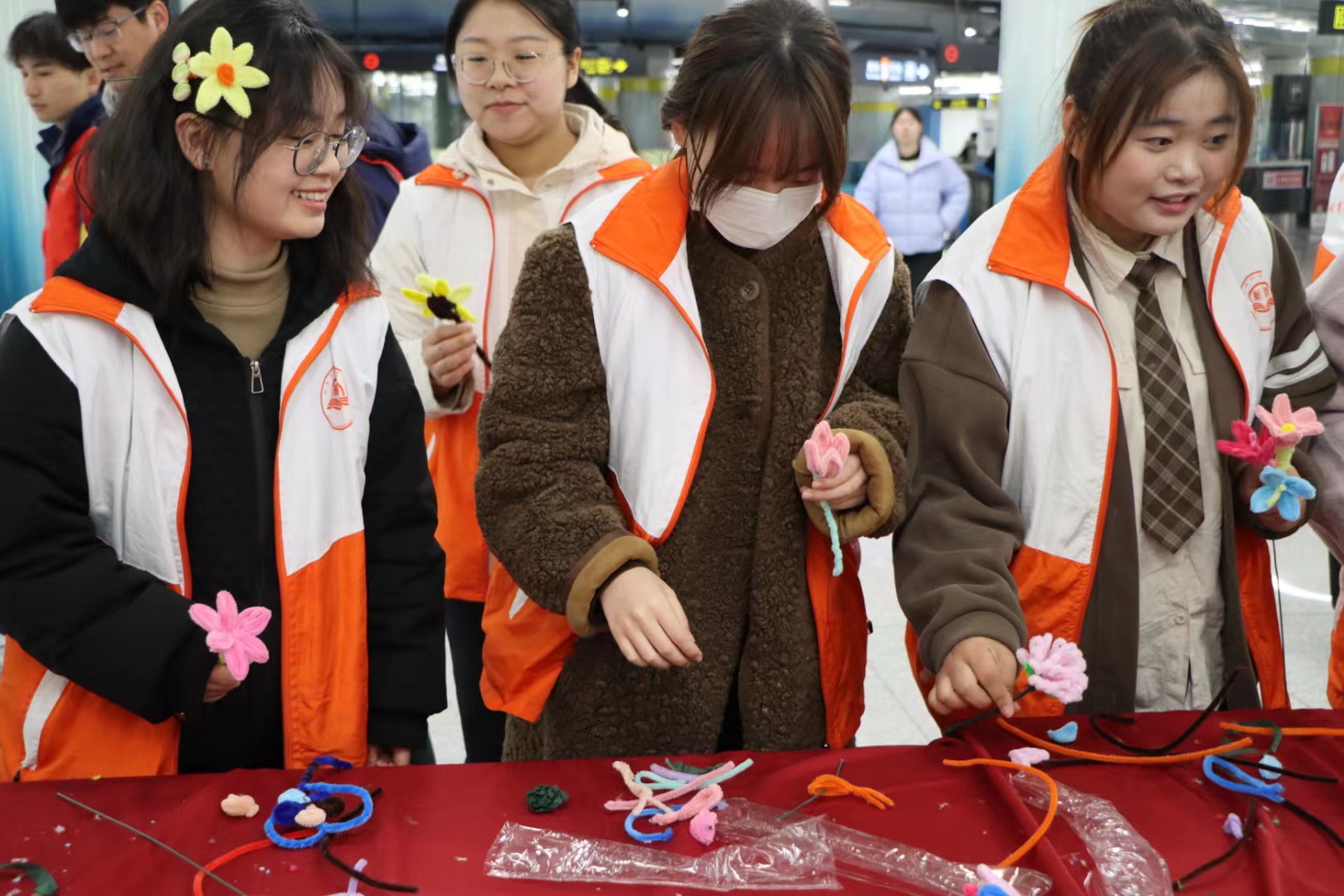 三月微风送暖,万物竞绽芳华。2024年3月5日是全国第61个“学雷锋纪念日”,也是第25个“中国青年志愿者服务日”。为深入贯彻落实习近平总书记关于弘扬雷锋精神的时代内涵,引导学生积极投身学雷锋志愿服务事业,大力弘扬“爱国、奉献、友爱、互助、进步”的雷锋精神,我系团总支响应共青团省委、院团委的号召,派出22级新闻一班团支部程宁宁、李曼宇、王晓雯、彭坤等9名团员志愿者于3月8日来到惠济区地铁站协助工作人员开展“三八”妇女节主题活动。