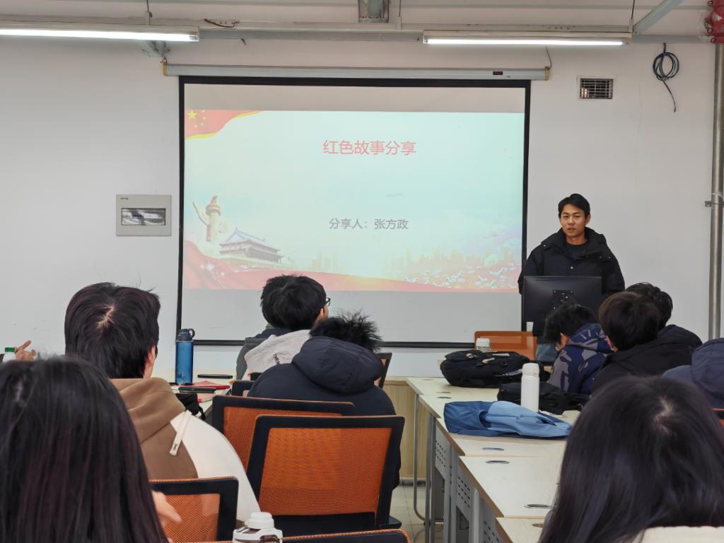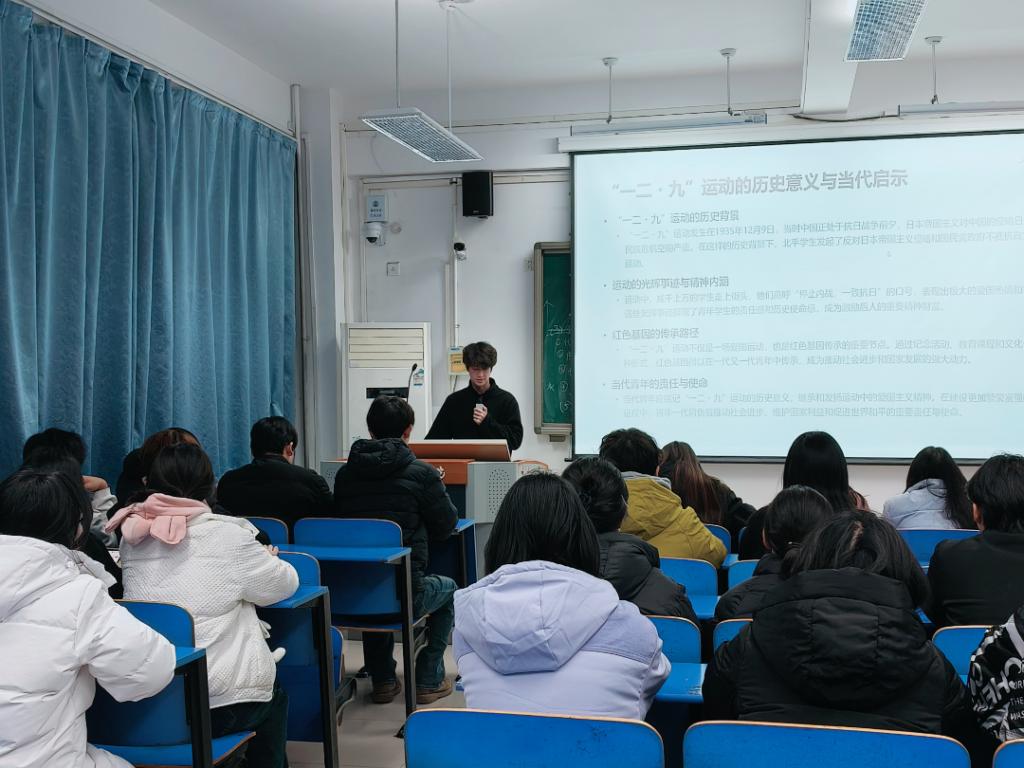 此次活动由团支书刘家栋主持开展。活动伊始,刘家栋详细介绍了“一二·九”运动的背景以及深远影响。接着,邀请退伍军人张方政为同学们带来了红色故事分享,他通过关联电影《大突围》,讲述了九一八事变开启日本侵华、一二·九运动掀起抗日救亡高潮,传递革命精神的故事,其饱含深情地讲述,将同学们带入了那段波澜壮阔的历史岁月,进一步激发同学们的爱国热情与民族自豪感。