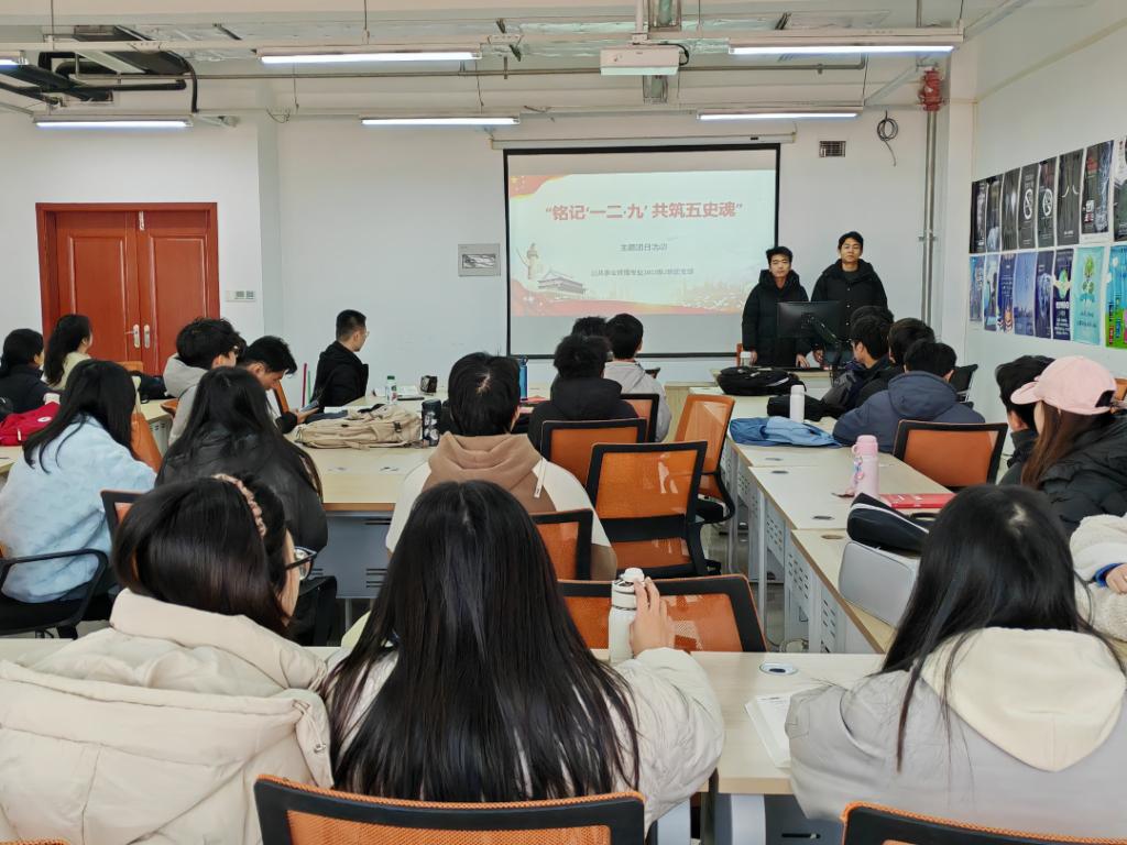 23级公管二班团支部在综合楼204教室举办了“铭记‘一二·九’,共筑五史魂”唱红歌活动。在团支书的带领下,同学们积极参与,歌唱《强军战歌》《保卫黄河》《没有共产党就没有新中国》等红色歌曲。在这些激动昂扬的红色歌曲中,同学们感受到了对党和国家的深情厚意。