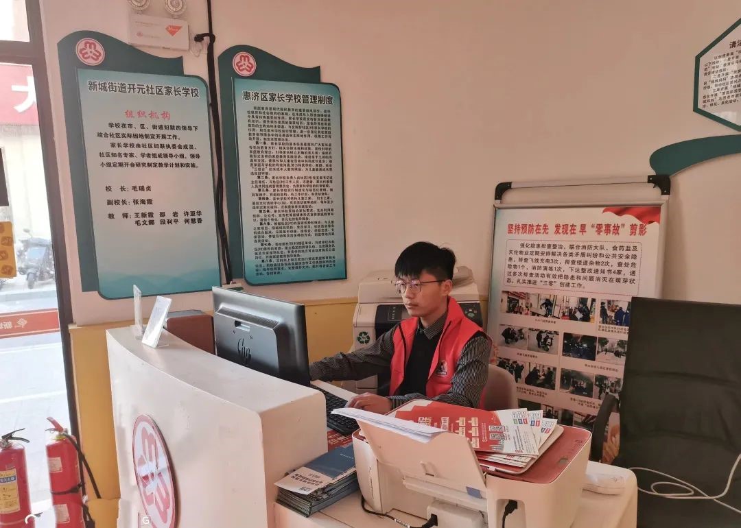 在第60个“学雷锋纪念日”,也是第24个中国青年志愿者服务日到来之际,为大力弘扬雷锋精神和志愿服务精神,3月4日上午9点,我系20级新闻二班团支部成员刘怡默、李鑫霖,20级公管一班团支部成员张佳怡、张子衡积极响应学院号召,前往惠济区新城街道开元社区党建服务中心进行志愿服务活动。