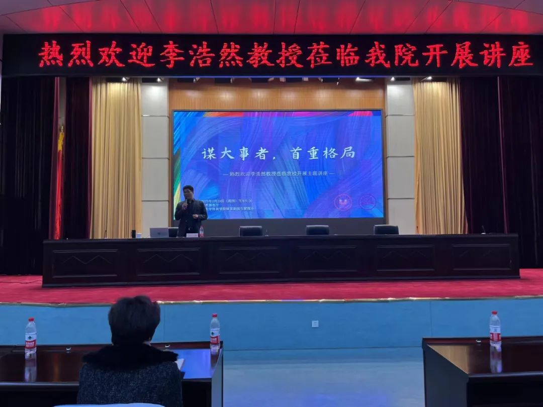 2023年2月23日下午,河南广播电视台广告经营中心书记、副主任、郑州大学、河南大学研究生导师李浩然教授受我系邀请在我院学术报告厅开展“谋大事者,首重格局”主题讲座。